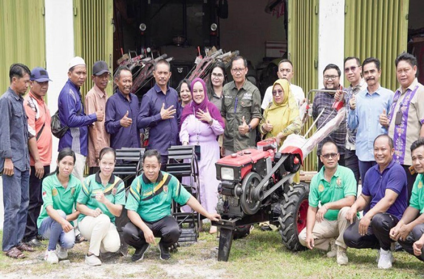 Wakil Ketua III DPRD Kalteng Faridawaty Darland Atjeh saat menyaksikan penyerahan handtraktor kepada 19 Kelompok Tani di Kabupaten Katingan.